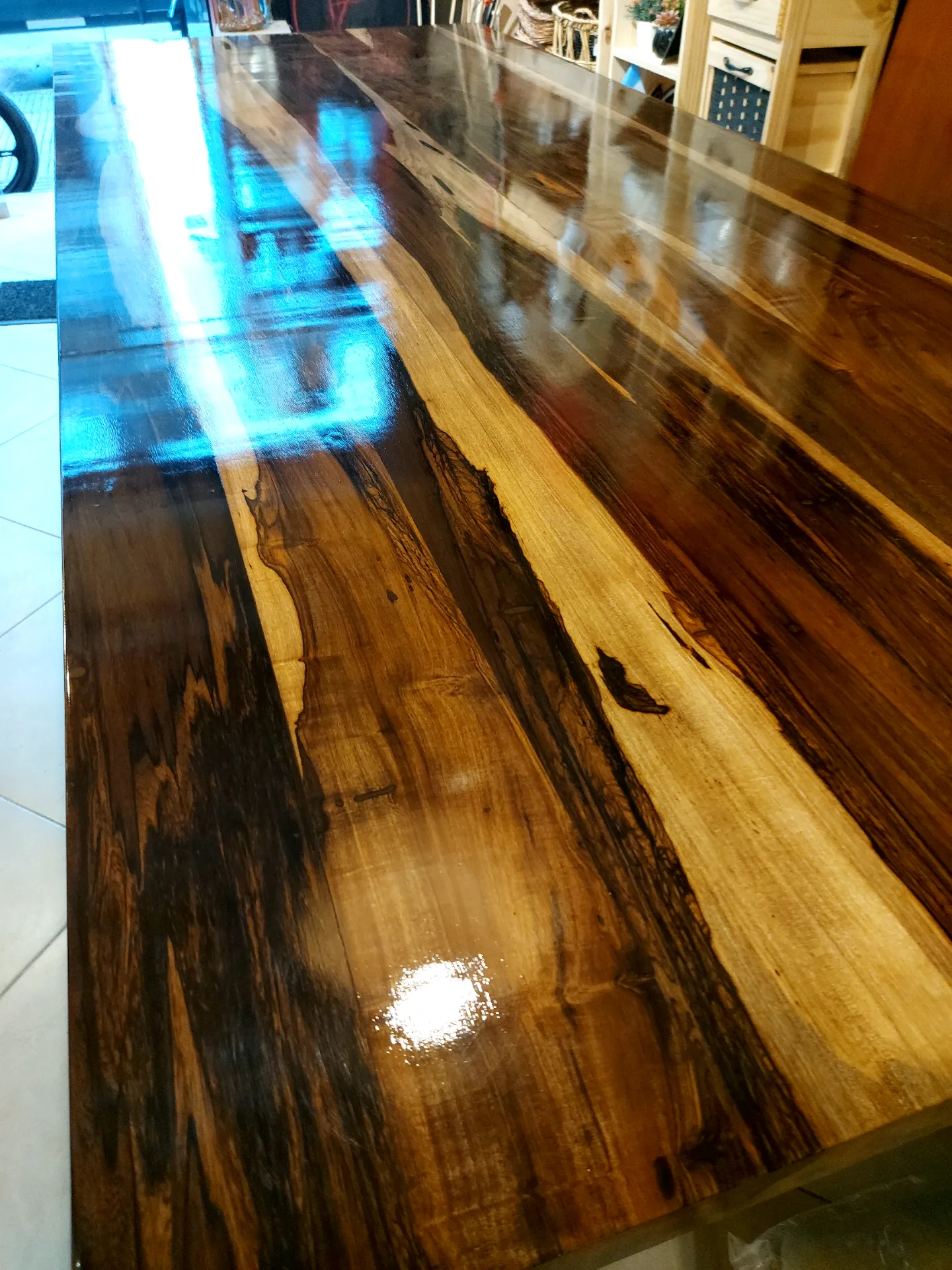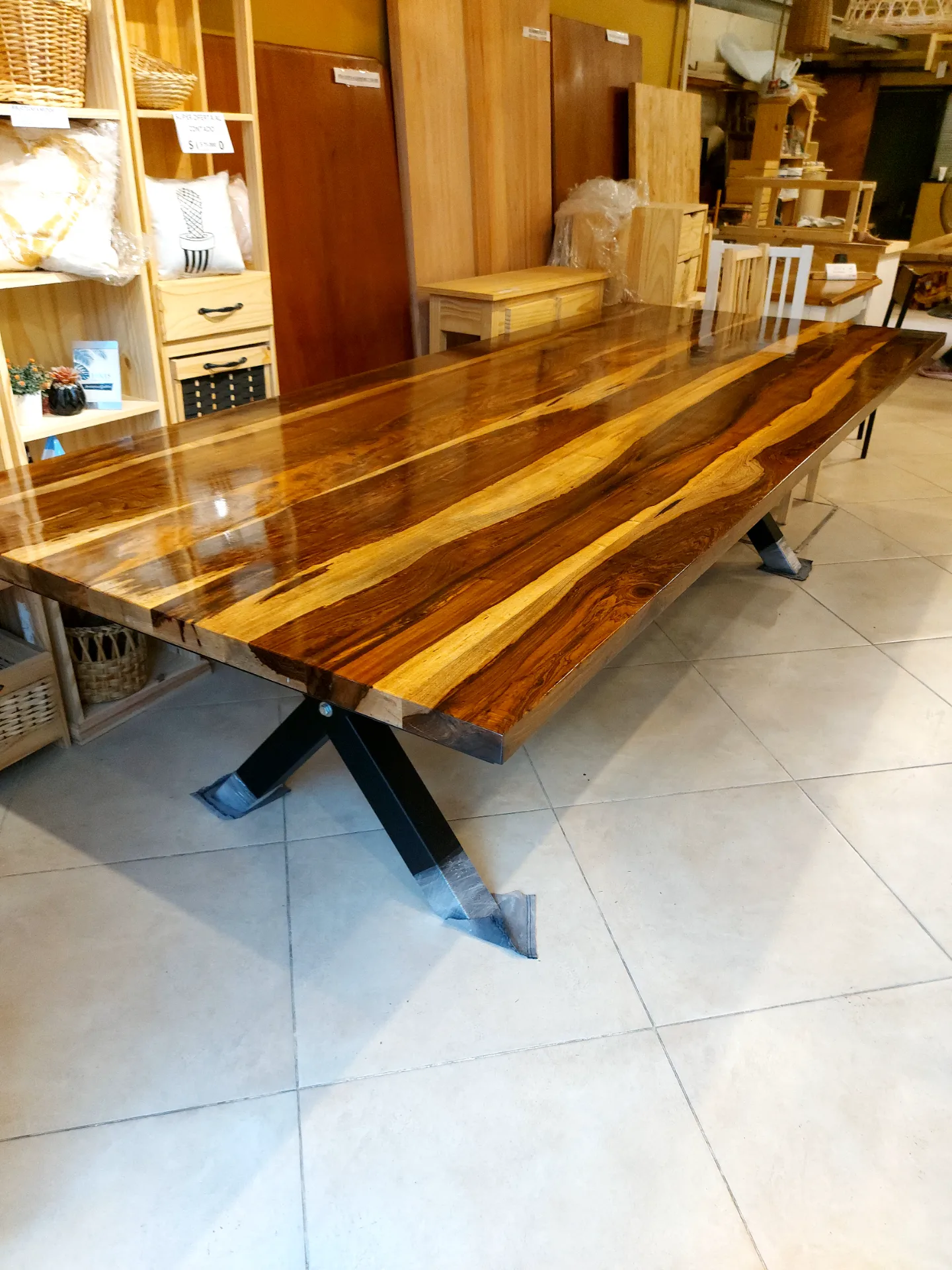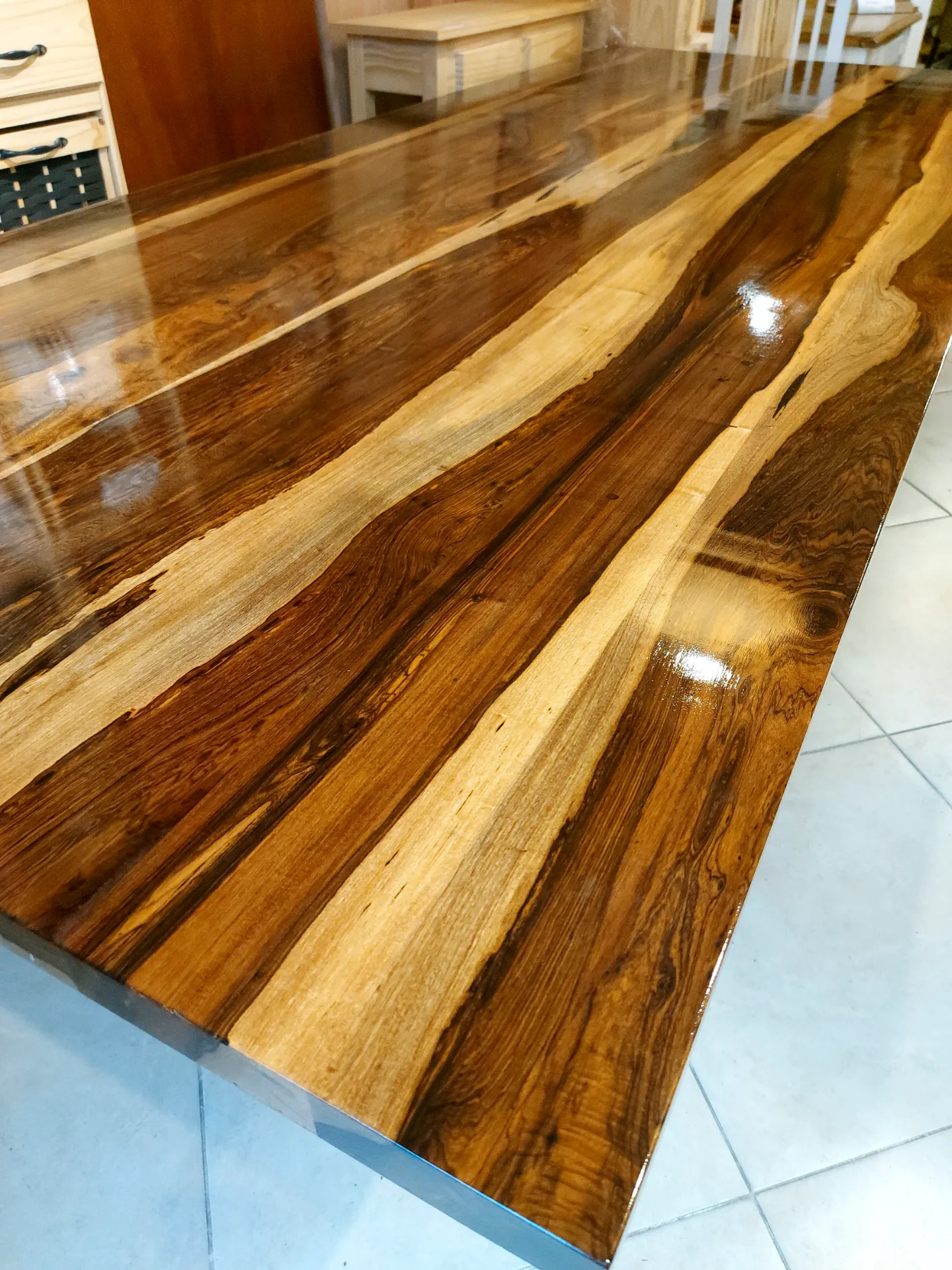 Mesa en madera maciza de guayubira, de diseño industrial, ideal para cocina y/o living
