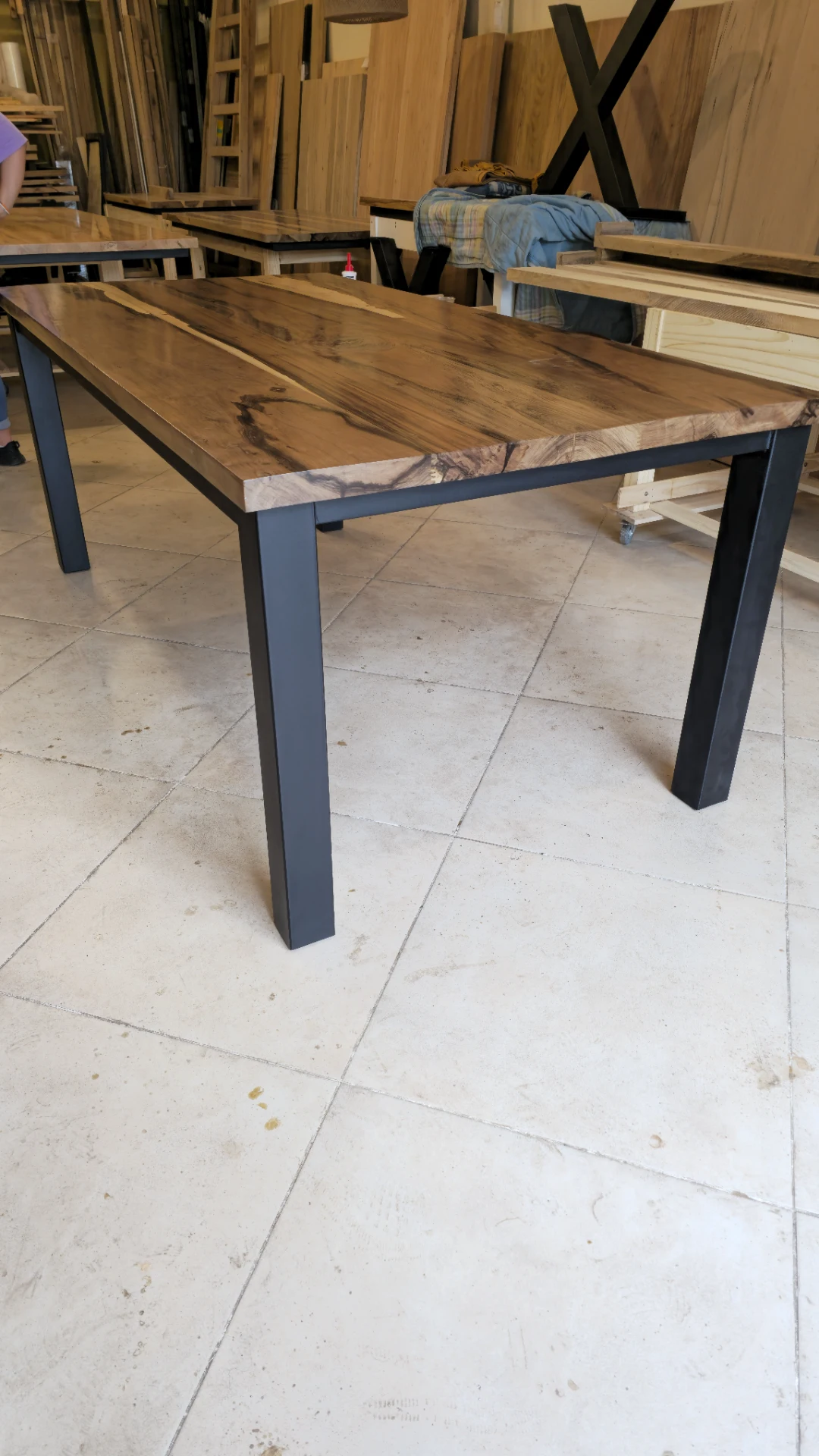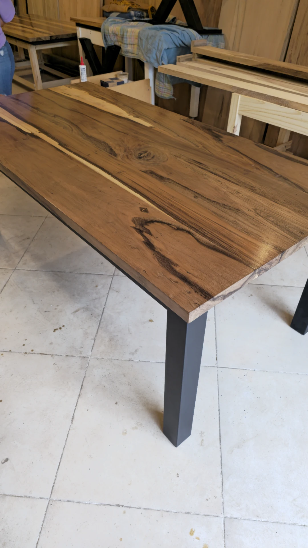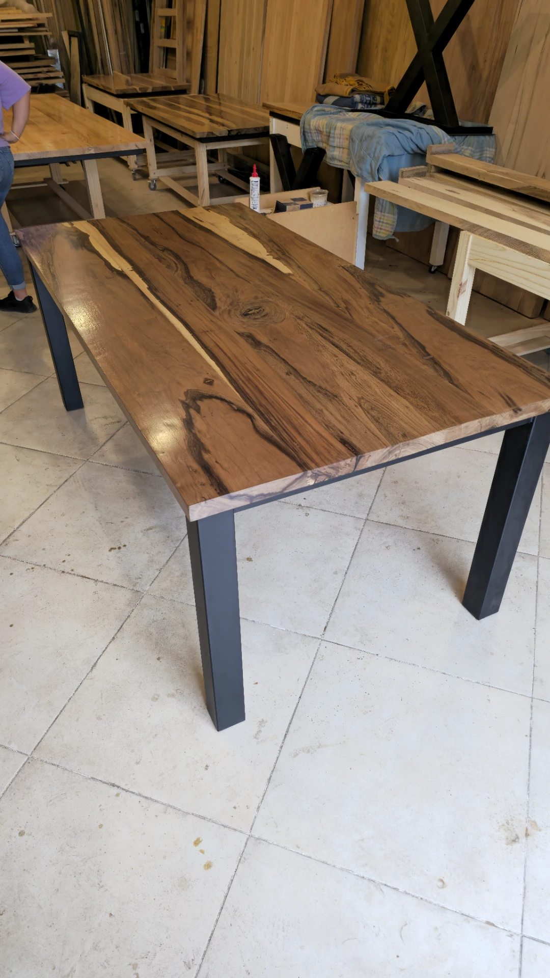 Mesa en madera maciza de guayubira, de diseño industrial, ideal para cocina y/o living