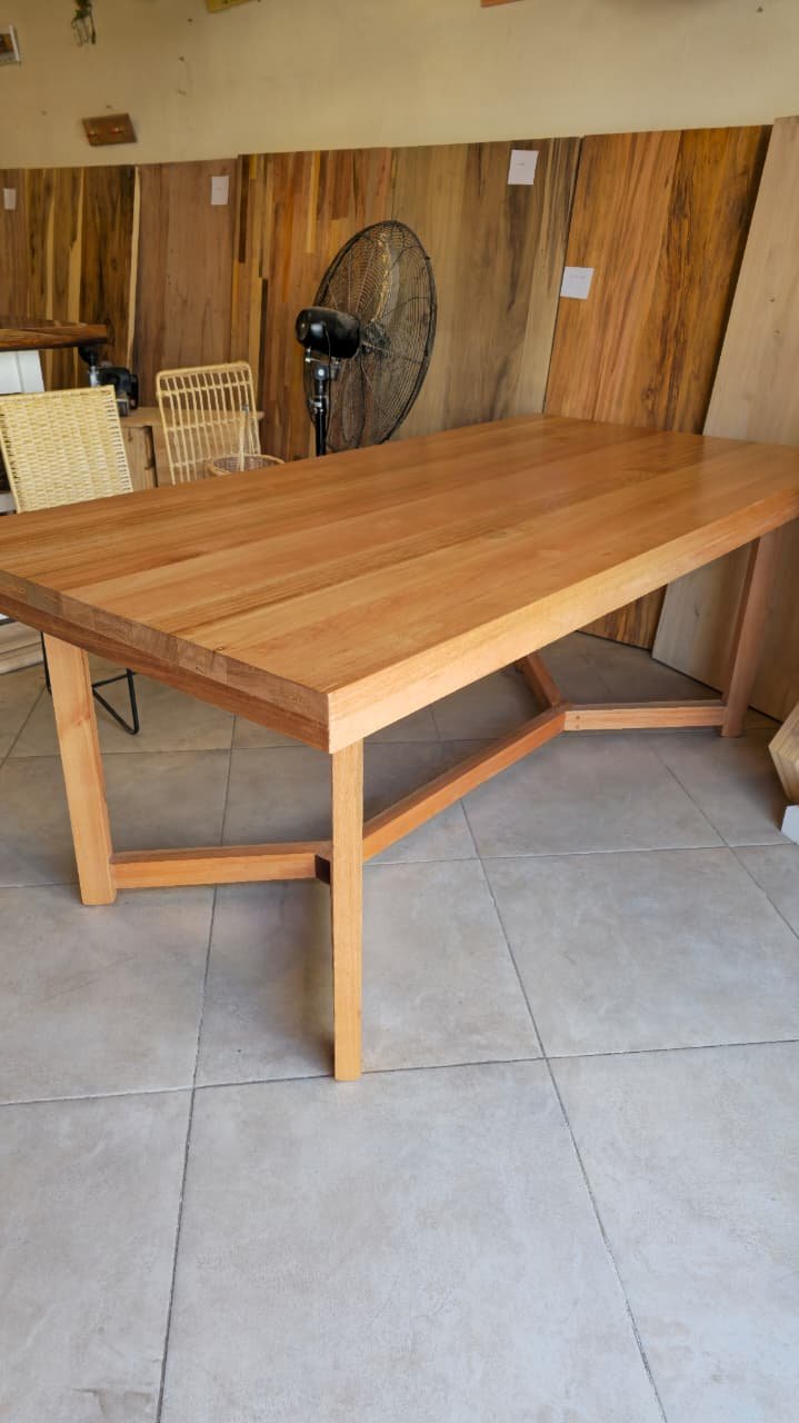 Mesa rectangular fabricada en madera maciza de eucalipto, reconocida por su durabilidad y tonalidad cálida. Su diseño combina estética y funcionalidad, convirtiéndola en una pieza ideal para livings modernos o rústicos.
